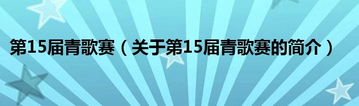 本文關于第15屆青歌賽的簡介就講解完畢,希望對大家有所幫助。