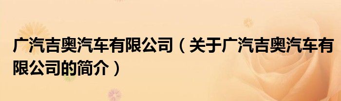 本文關于廣汽吉奧汽車有限公司的簡介就講解完畢,希望對大家有所幫助。