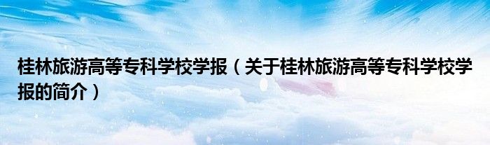 本文關于桂林旅游高等專科學校學報的簡介就講解完畢,希望對大家有所幫助。