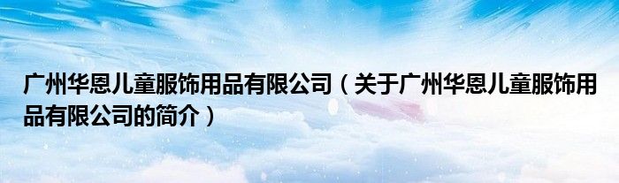 本文關于廣州華恩兒童服飾用品有限公司的簡介就講解完畢,希望對大家有所幫助。