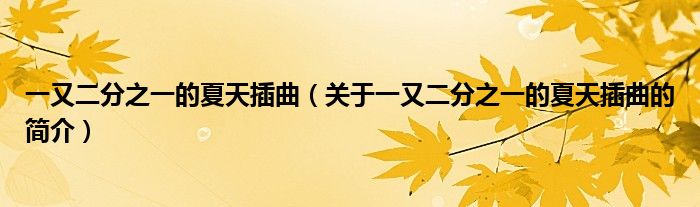 大家好,一又二分之一的夏天插曲,關于一又二分之一的夏天插曲的簡介很多人還不知道,現在讓我們一起來看看吧!