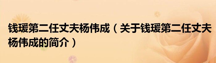 大家好,錢瑗第二任丈夫楊偉成,關于錢瑗第二任丈夫楊偉成的簡介很多人還不知道,現在讓我們一起來看看吧!