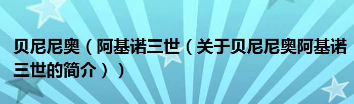 大家好,貝尼尼奧 阿基諾三世,關于貝尼尼奧 阿基諾三世的簡介很多人還不知道,現在讓我們一起來看看吧!