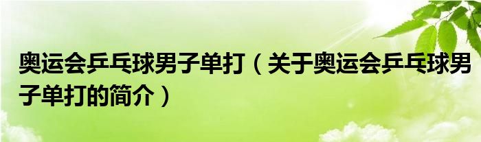 1、奧運會乒乓球男子單打是奧運會乒乓球比賽的主要賽事之一。