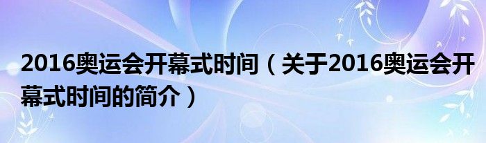 大家好,2016奧運會開幕式時間,關于2016奧運會開幕式時間的簡介很多人還不知道,現在讓我們一起來看看吧!