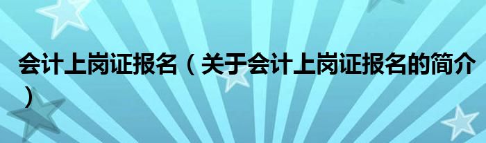 本文關于會計上崗證報名的簡介就講解完畢,希望對大家有所幫助。