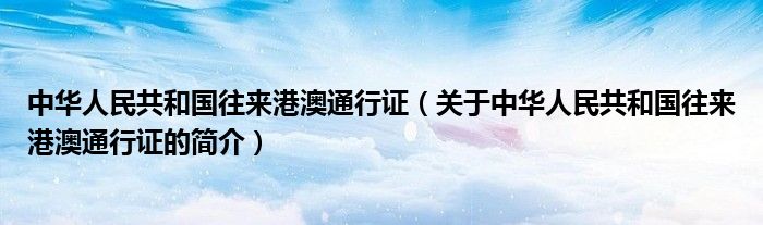 本文關于中華人民共和國往來港澳通行證的簡介就講解完畢,希望對大家有所幫助。