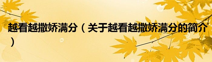 本文關(guān)于越看越撒嬌滿分的簡介就講解完畢,希望對(duì)大家有所幫助。