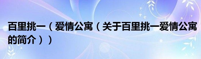 大家好,百里挑一 愛情公寓,關于百里挑一 愛情公寓的簡介很多人還不知道,現在讓我們一起來看看吧!