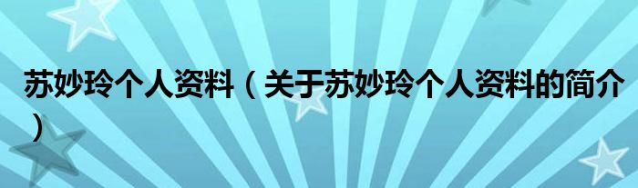 大家好,蘇妙玲個人資料,關(guān)于蘇妙玲個人資料的簡介很多人還不知道,現(xiàn)在讓我們一起來看看吧!