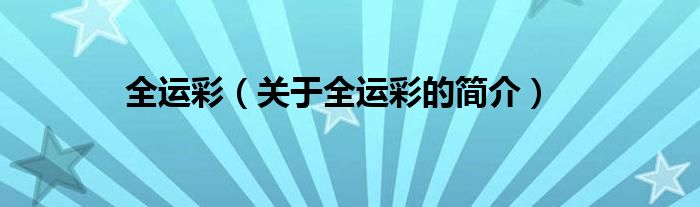 大家好,全運彩,關于全運彩的簡介很多人還不知道,現在讓我們一起來看看吧!