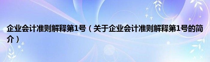 大家好,企業會計準則解釋第1號,關于企業會計準則解釋第1號的簡介很多人還不知道,現在讓我們一起來看看吧!