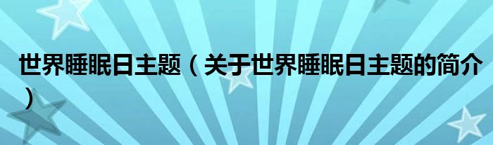 本文關于世界睡眠日主題的簡介就講解完畢,希望對大家有所幫助。