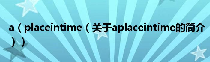 本文關于a place in time的簡介就講解完畢,希望對大家有所幫助。