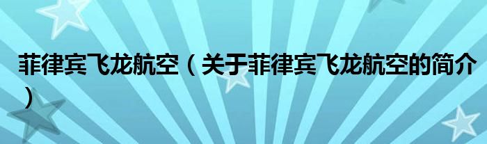 本文關于菲律賓飛龍航空的簡介就講解完畢,希望對大家有所幫助。