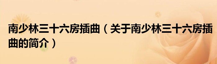 本文關于南少林三十六房插曲的簡介就講解完畢,希望對大家有所幫助。
