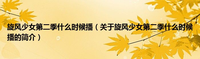 本文關于旋風少女第二季什么時候播的簡介就講解完畢,希望對大家有所幫助。