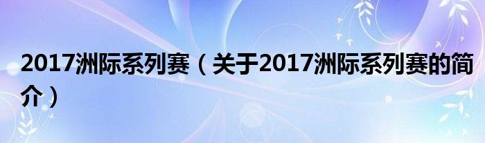 大家好,2017洲際系列賽,關(guān)于2017洲際系列賽的簡介很多人還不知道,現(xiàn)在讓我們一起來看看吧!