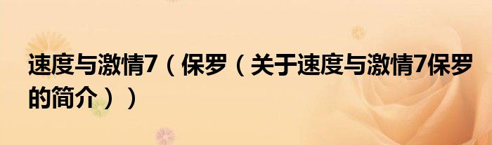 大家好,速度與激情7 保羅,關(guān)于速度與激情7 保羅的簡介很多人還不知道,現(xiàn)在讓我們一起來看看吧!