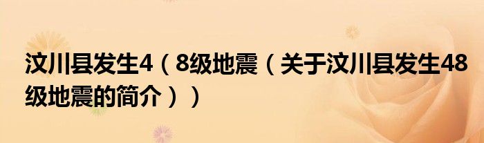本文關(guān)于汶川縣發(fā)生4 8級(jí)地震的簡(jiǎn)介就講解完畢,希望對(duì)大家有所幫助。