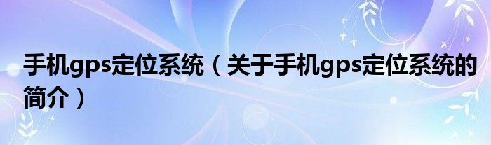 本文關于手機gps定位系統的簡介就講解完畢,希望對大家有所幫助。