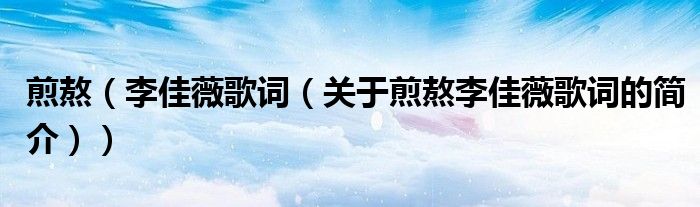 本文關于煎熬 李佳薇 歌詞的簡介就講解完畢,希望對大家有所幫助。