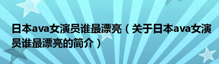 本文關于日本ava女演員誰最漂亮的簡介就講解完畢,希望對大家有所幫助。