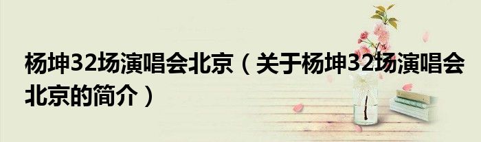 本文關(guān)于楊坤32場(chǎng)演唱會(huì)北京的簡(jiǎn)介就講解完畢,希望對(duì)大家有所幫助。
