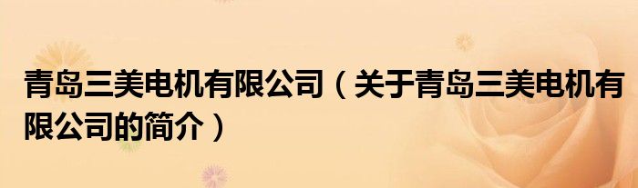本文關于青島三美電機有限公司的簡介就講解完畢,希望對大家有所幫助。