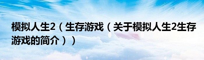 本文關于模擬人生2 生存游戲的簡介就講解完畢,希望對大家有所幫助。