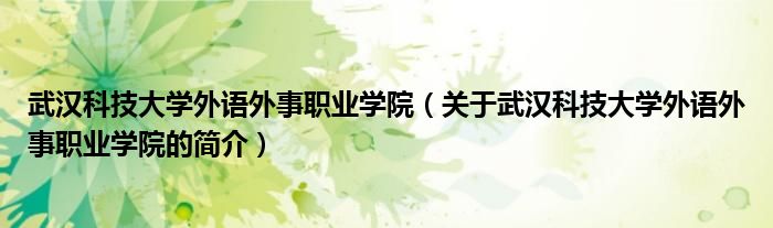 本文關于武漢科技大學外語外事職業學院的簡介就講解完畢,希望對大家有所幫助。