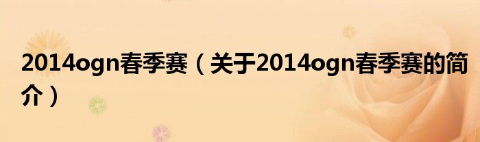 本文關(guān)于2014ogn春季賽的簡(jiǎn)介就講解完畢,希望對(duì)大家有所幫助。
