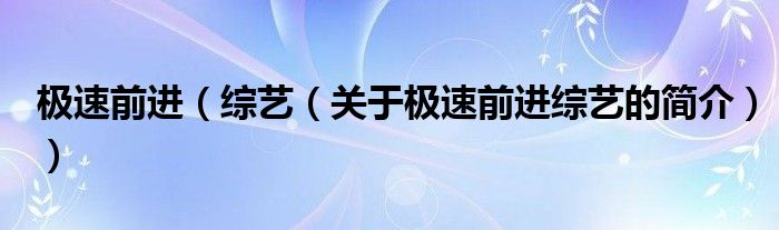 本文關于極速前進 綜藝的簡介就講解完畢,希望對大家有所幫助。