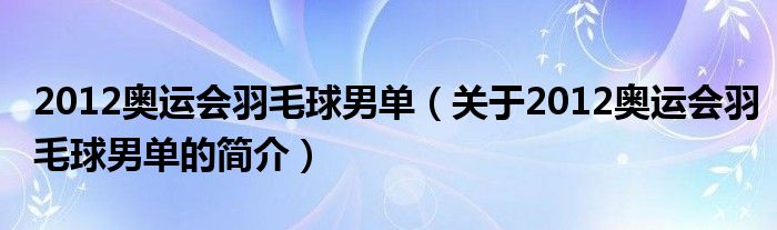 本文關于2012奧運會羽毛球男單的簡介就講解完畢,希望對大家有所幫助。