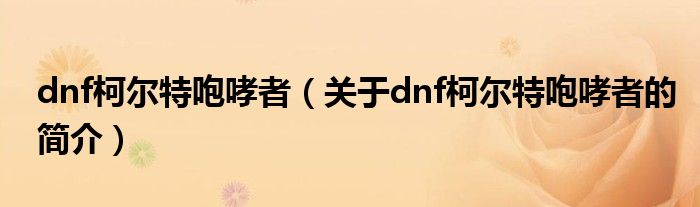本文關(guān)于dnf柯?tīng)柼嘏叵叩暮?jiǎn)介就講解完畢,希望對(duì)大家有所幫助。