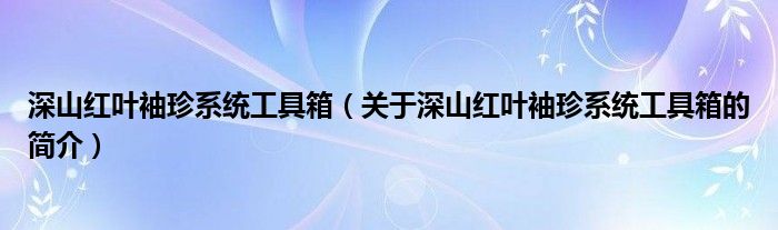 大家好,深山紅葉袖珍系統工具箱,關于深山紅葉袖珍系統工具箱的簡介很多人還不知道,現在讓我們一起來看看吧!