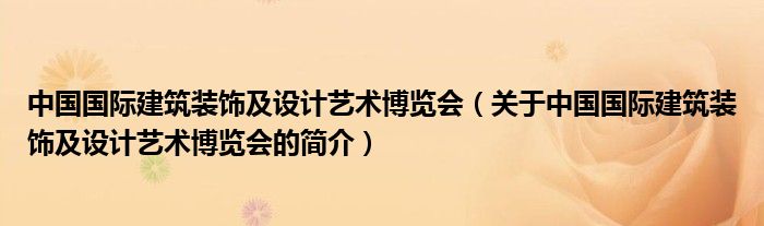 本文關于中國國際建筑裝飾及設計藝術博覽會的簡介就講解完畢,希望對大家有所幫助。