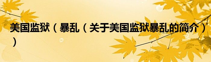 本文關(guān)于美國監(jiān)獄 暴亂的簡介就講解完畢,希望對(duì)大家有所幫助。