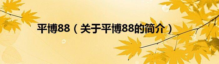 本文關于平博88的簡介就講解完畢,希望對大家有所幫助。