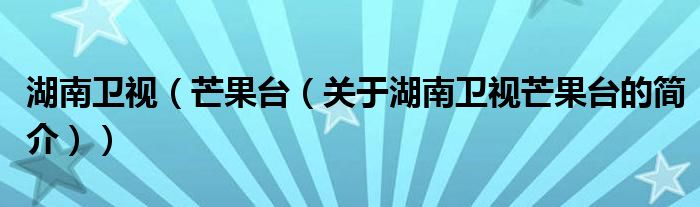 大家好,湖南衛視 芒果臺,關于湖南衛視 芒果臺的簡介很多人還不知道,現在讓我們一起來看看吧!