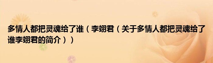 本文關(guān)于多情人都把靈魂給了誰(shuí) 李翊君的簡(jiǎn)介就講解完畢,希望對(duì)大家有所幫助。