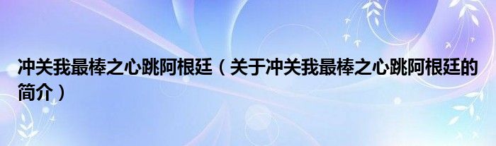 大家好,沖關我最棒之心跳阿根廷,關于沖關我最棒之心跳阿根廷的簡介很多人還不知道,現在讓我們一起來看看吧!