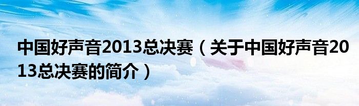 本文關(guān)于中國好聲音2013總決賽的簡介就講解完畢,希望對大家有所幫助。