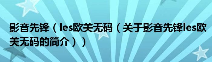 本文關于影音先鋒 les歐美無碼的簡介就講解完畢,希望對大家有所幫助。