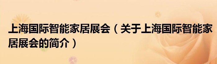 本文關于上海國際智能家居展會的簡介就講解完畢,希望對大家有所幫助。