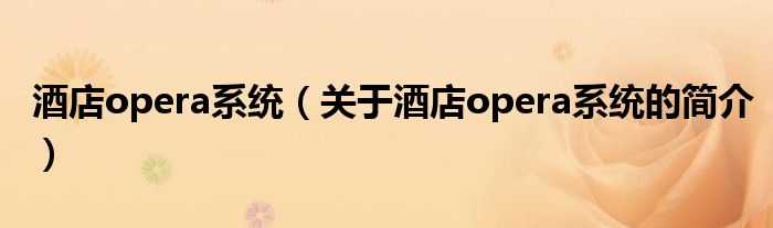 大家好,酒店opera系統(tǒng),關(guān)于酒店opera系統(tǒng)的簡(jiǎn)介很多人還不知道,現(xiàn)在讓我們一起來(lái)看看吧!