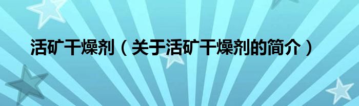 本文關于活礦干燥劑的簡介就講解完畢,希望對大家有所幫助。