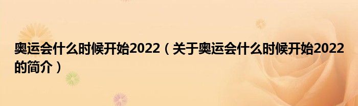 大家好,奧運會什么時候開始2022,關于奧運會什么時候開始2022的簡介很多人還不知道,現(xiàn)在讓我們一起來看看吧!