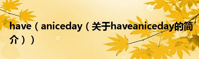 本文關于have a nice day的簡介就講解完畢,希望對大家有所幫助。