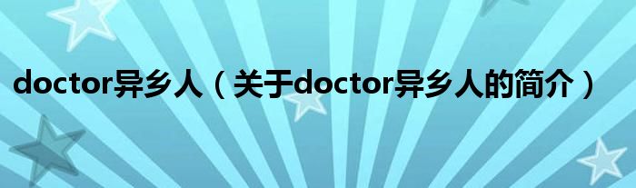 本文關(guān)于doctor異鄉(xiāng)人的簡(jiǎn)介就講解完畢,希望對(duì)大家有所幫助。